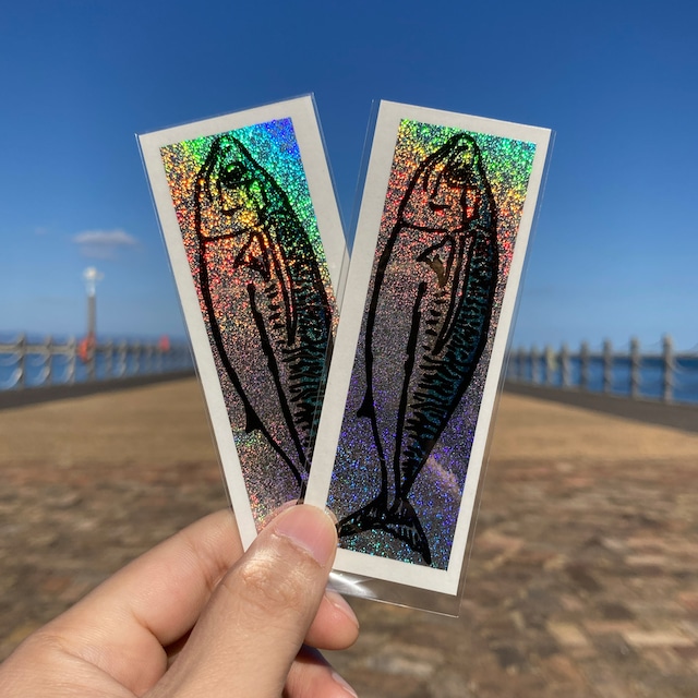 w150mm×h48mm ※鯖の形に沿ってハーフカットが入っています 【厚手の耐水・強粘着の仕様】 携帯の裏にちょいと挟んだり 釣具やバイク・車など屋外の使用も可能ですので ちょっとしたプレゼントにもおすすめです